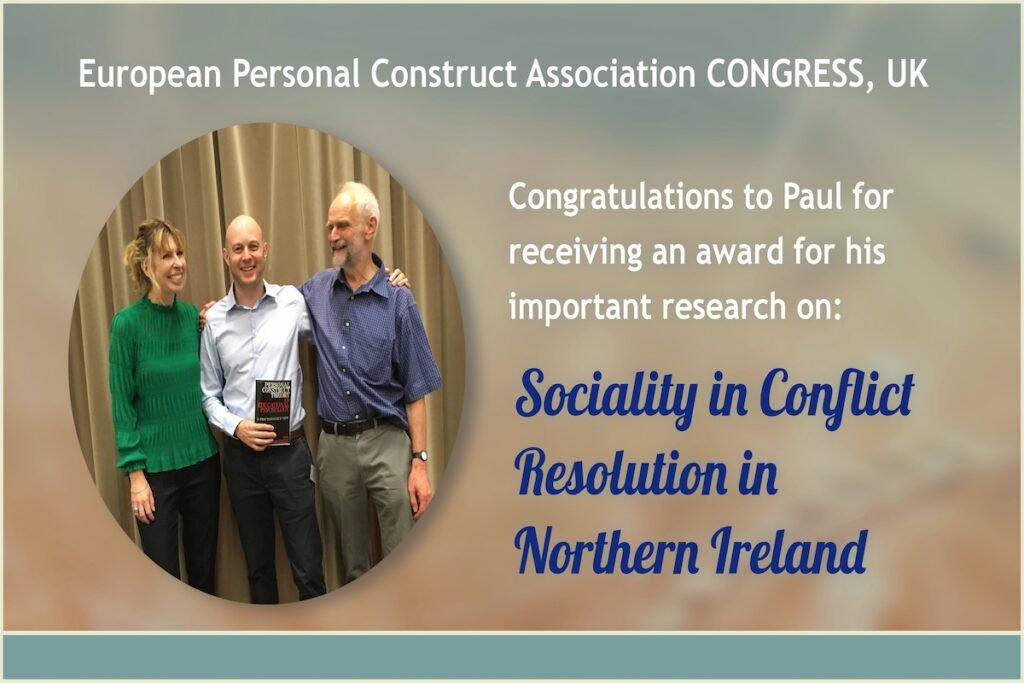 We are thrilled that his incredibly important research paper “Sociality in Conflict Resolution in Northern Ireland: Application of the Perceiver Element Grid” has been recognised across in the field. The paper has won an award for the best newcomer at the European CONGRESS of Personal Construct Association, Edinburgh.